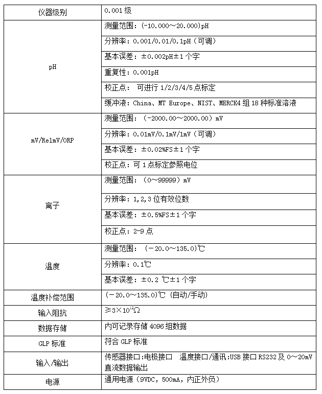 分辨率為 0.001pH/0.01mV,具有極高精確度